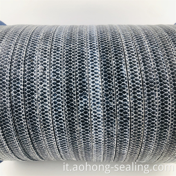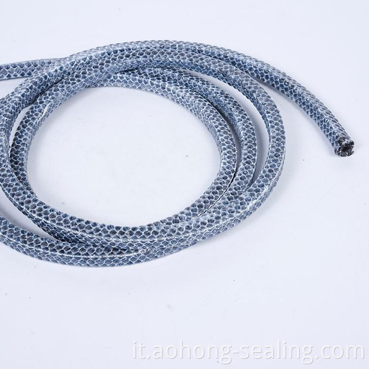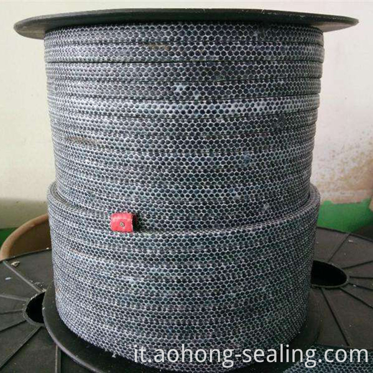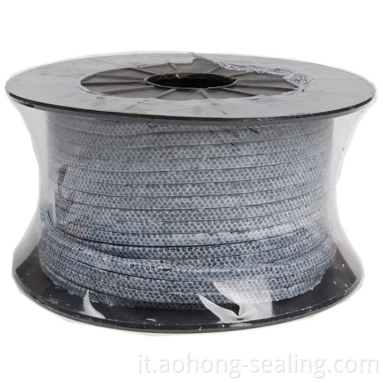 Filato intrecciato in filo di grafite PTFE, imballaggio a bordo con filo aramidico, impregnato di un lubrificante unico. La grafite è integrata nel filo in modo che quando si sfrega, l'involucro è liscio