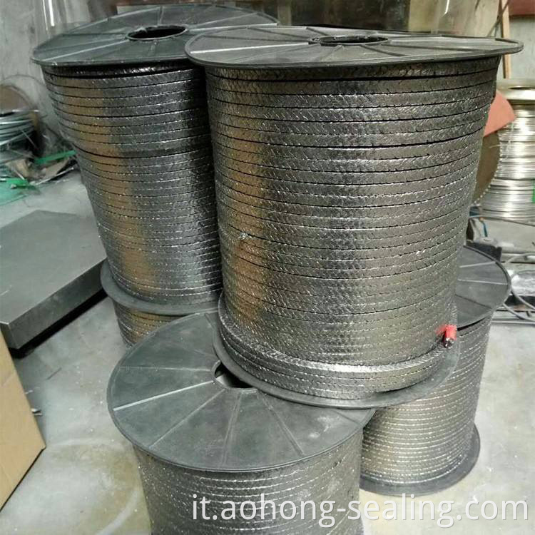 L'imballaggio delle ghiandole di grafite, realizzata in trecce di filamento di grafite espanso, è resistente al calore, ai prodotti chimici e stretta nella tenuta. È ampiamente utilizzato nelle valvole a vapore della centrale elettrica o come sigillatura statica in luoghi in cui prevale ad alta temperatura e pressione, o corrosione chimica (tranne acido solforico concentrato o agenti ossidanti forti).