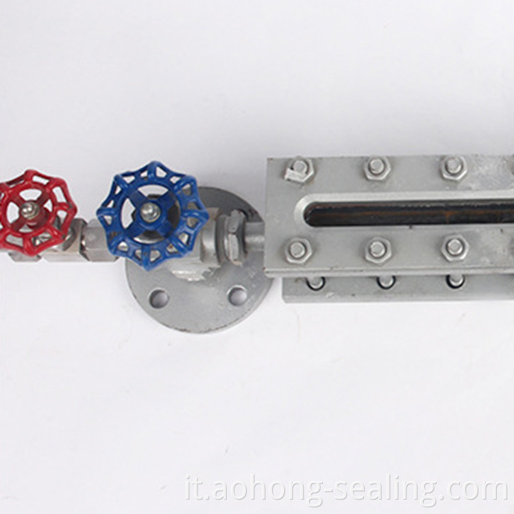 occupatene. Questo prodotto in serie è stabile, sigillato e affidabile, installazione semplice, che è strumento ideale per rilevare a livello di liquido in tutti i tipi di contenitori con pressione media o bassa. Connessione con le flange superiori e inferiori di questo indicatore di livello con le flange superiori e inferiori Il contenitore per formare un permeatore, quindi l'altezza del liquido può essere vista direttamente.