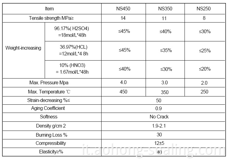 Foglio di articolazione priva di amianto acido